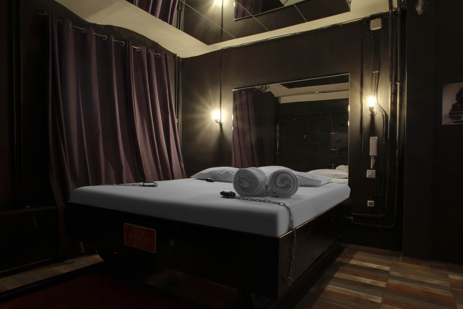 Райдер: горизонтальная фиксация на кровати, площадка для мокрых игр, ударные девайсы, зеркало на потолке, санузел, кондиционер, халаты, питьевая вода, одноразовые тапочки, полотенца, фен, телевизор, косметические принадлежности.